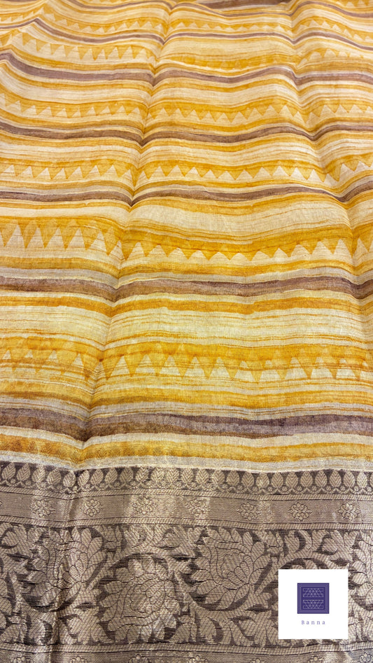 Pure Kora Silk with luxurious floral prints - Lemon Yellow