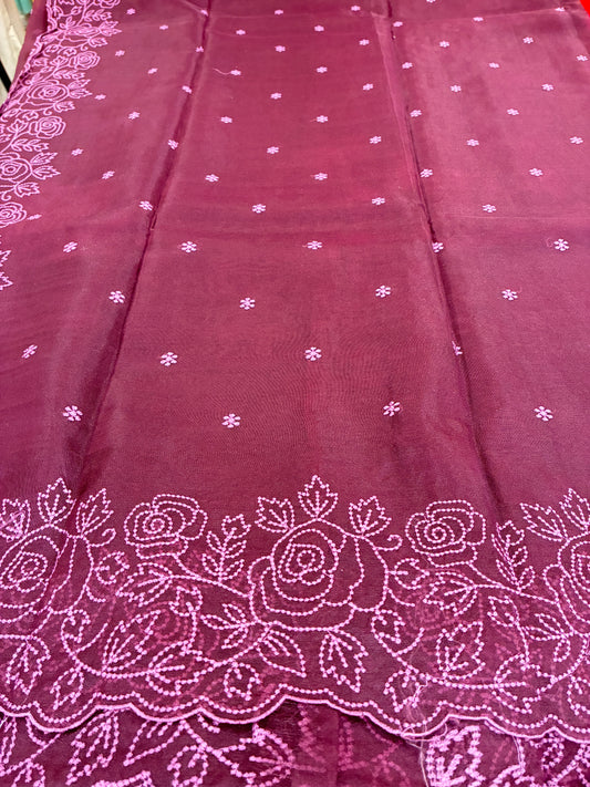 Maroon Rose Floral - Organza saree in Maroon with Floral Embroidery