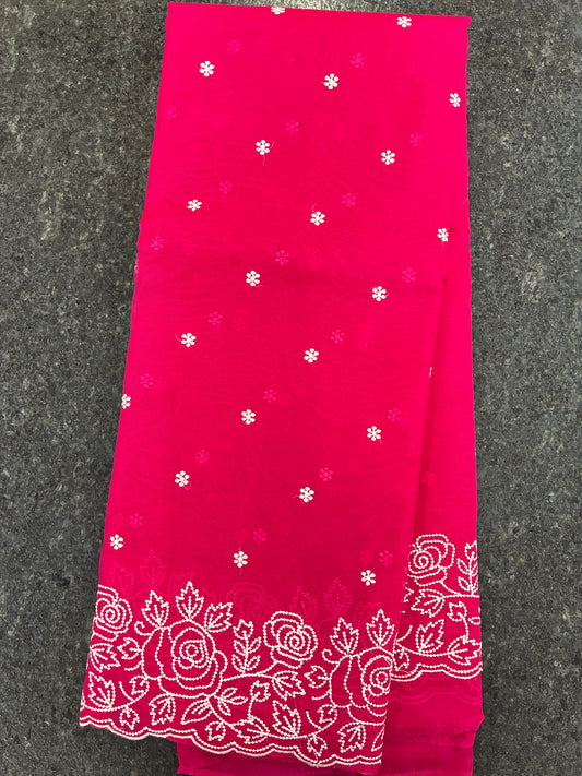 Pink Rose Floral - Organza saree in Pink with Floral Embroidery