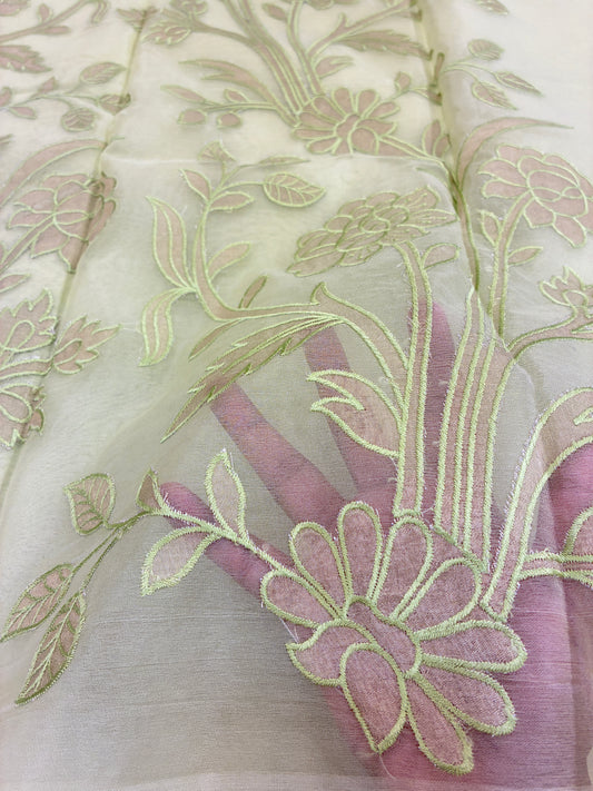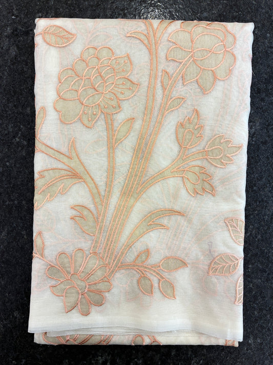 Organza Appliqué Floral Saree with embroidery and cut work - Off White