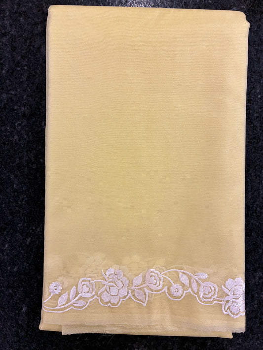 Organza Appliqué Floral Saree with embroidery and cut work - Yellow