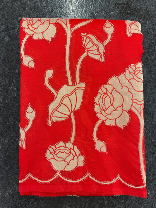 Pure Organza Silk with luxurious floral prints - Red and Yellow