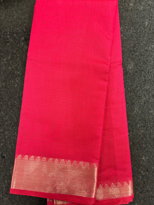 Cotton Saree temple border - Pink