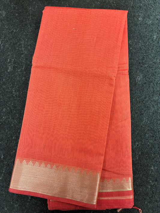Cotton Saree temple border - Peach