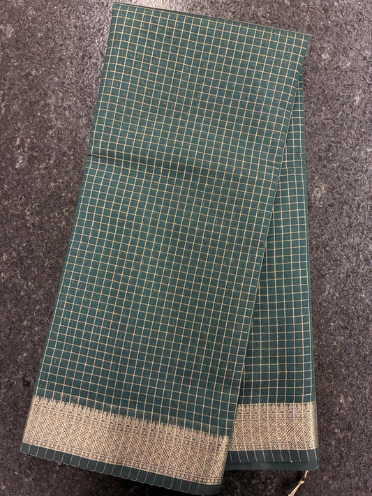 Cotton silk with checks - Bottle Green