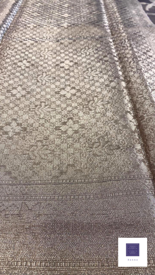 Grandeur Tissue Saree - Brown, Gold and Silver