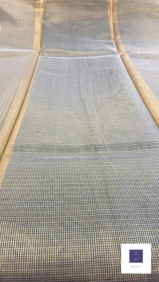 Kota Tissue Saree with Banarasi Border - Grey Blue