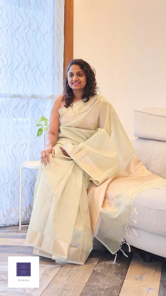 Kota Tissue Saree with Banarasi Border - Pastel Green
