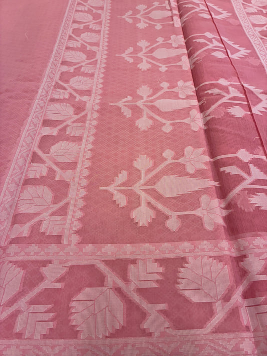 Jamdhani Cotton Saree with Silk thread work (Resham) - Baby Pink
