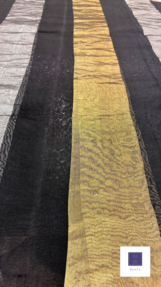 Pure Tissue and Organza silk saree - Black Gold Silver