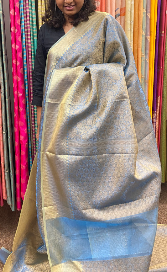 Tissue Brocade saree Kanjeevaram weaving - Blue and Gold