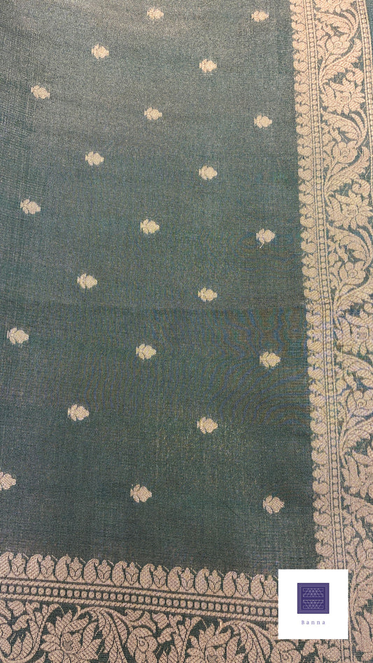 Tissue Silk woven traditional Banarasi saree - Olive Green