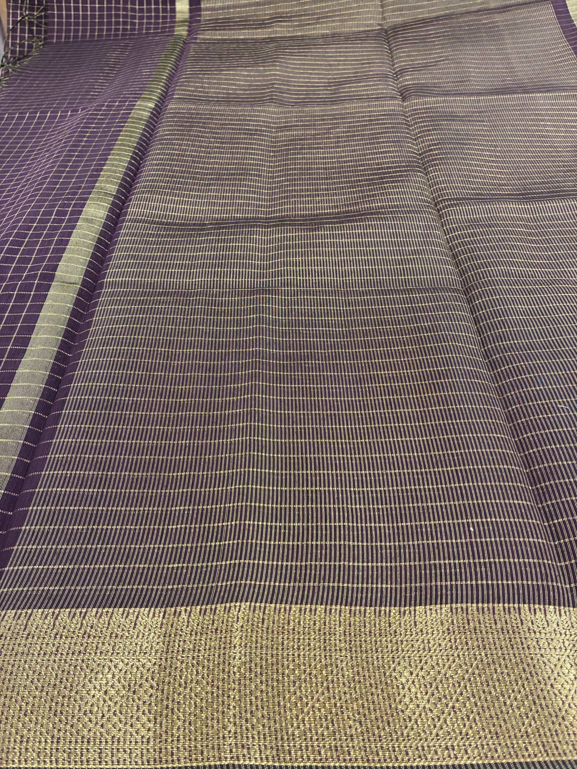 Elevate your wardrobe with this sophisticated cotton-silk blend fabric featuring a classic check pattern in navy blue. The combination of natural cotton and lustrous silk creates a fabric with exceptional breathability and subtle sheen, making it ideal for both casual and semi-formal wear. The structured check design adds visual interest while maintaining versatility. Perfect for tailored shirts, lightweight jackets, or contemporary sarees, this fabric drapes beautifully and offers comfort throughout the day. The navy base ensures easy coordination with your existing pieces.
