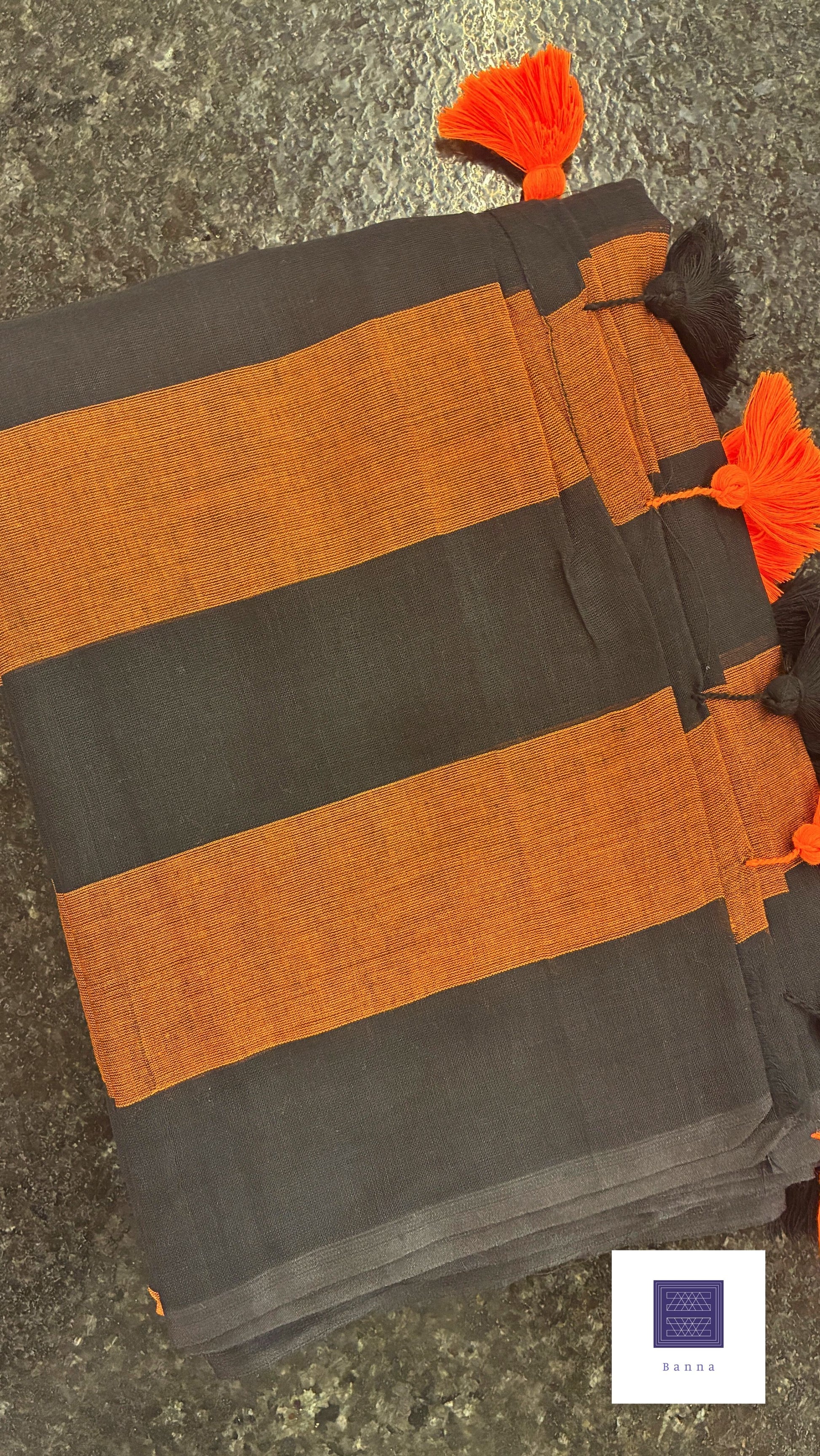 Drape yourself in timeless elegance with this Earthline Mul Cotton Saree, crafted from pure mulberry cotton for exceptional breathability and comfort. The striking black and orange horizontal stripes create a sophisticated visual rhythm that transitions seamlessly from casual daywear to festive occasions. Mul cotton's natural softness and lightweight texture make it ideal for warm climates, while its inherent durability ensures longevity with proper care. This versatile piece celebrates understated style with contemporary flair, perfect for those who appreciate quality craftsmanship and refined aesthetics.
