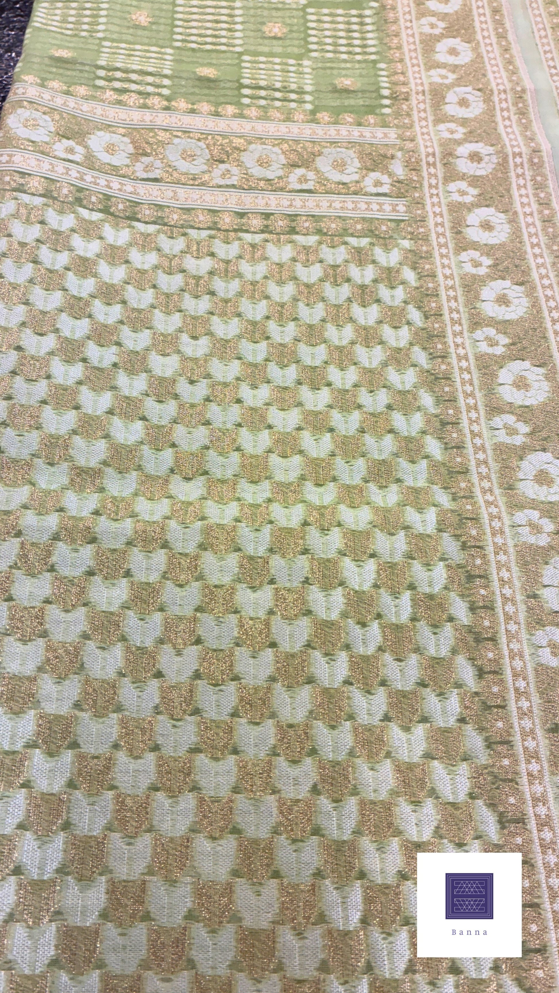 This Handloom Jamdhani Cotton Saree in light pista green showcases the intricate craftsmanship of traditional weaving. Made from pure cotton, it offers breathable comfort ideal for warm climates while the refined Jamdhani patterns add a subtle elegance. Perfect for those who appreciate artisanal textiles, this saree blends heritage artistry with everyday wearability.