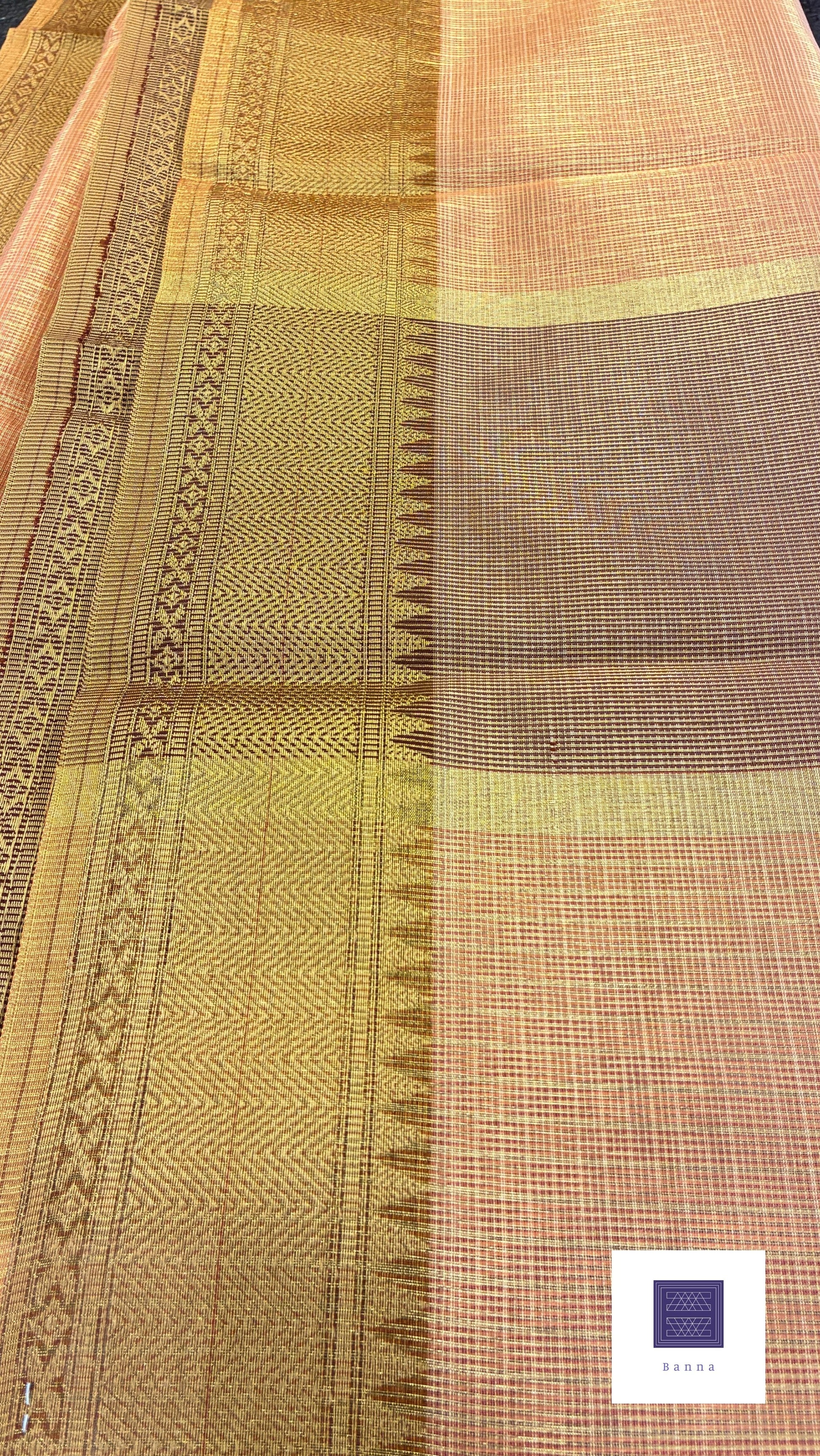 Kota tissue Banarasi saree - Light brown and peach