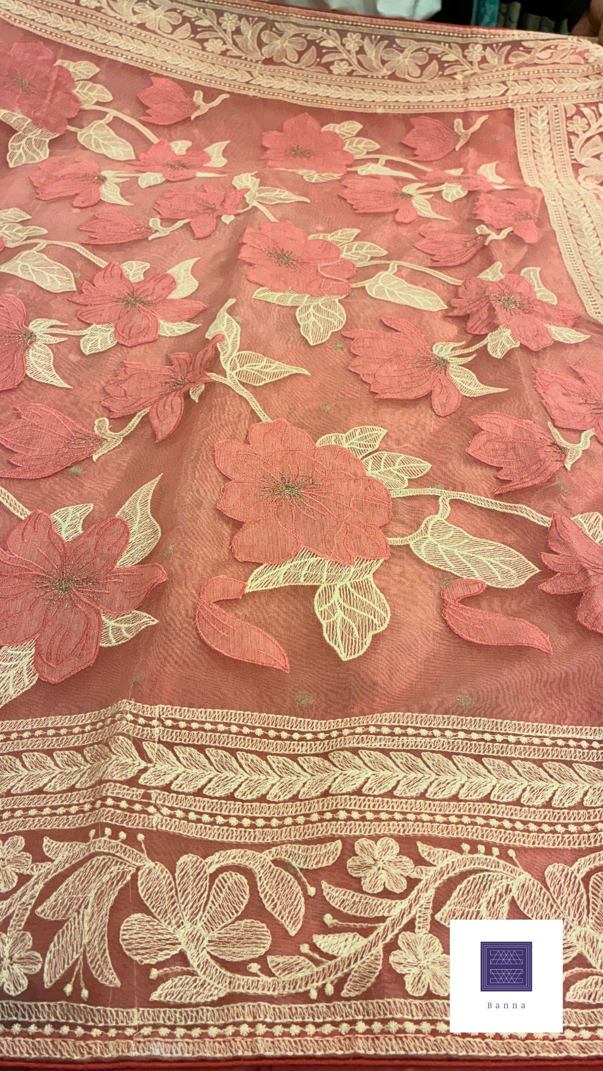 Rich Organza Appliqué and thread work saree - Pink