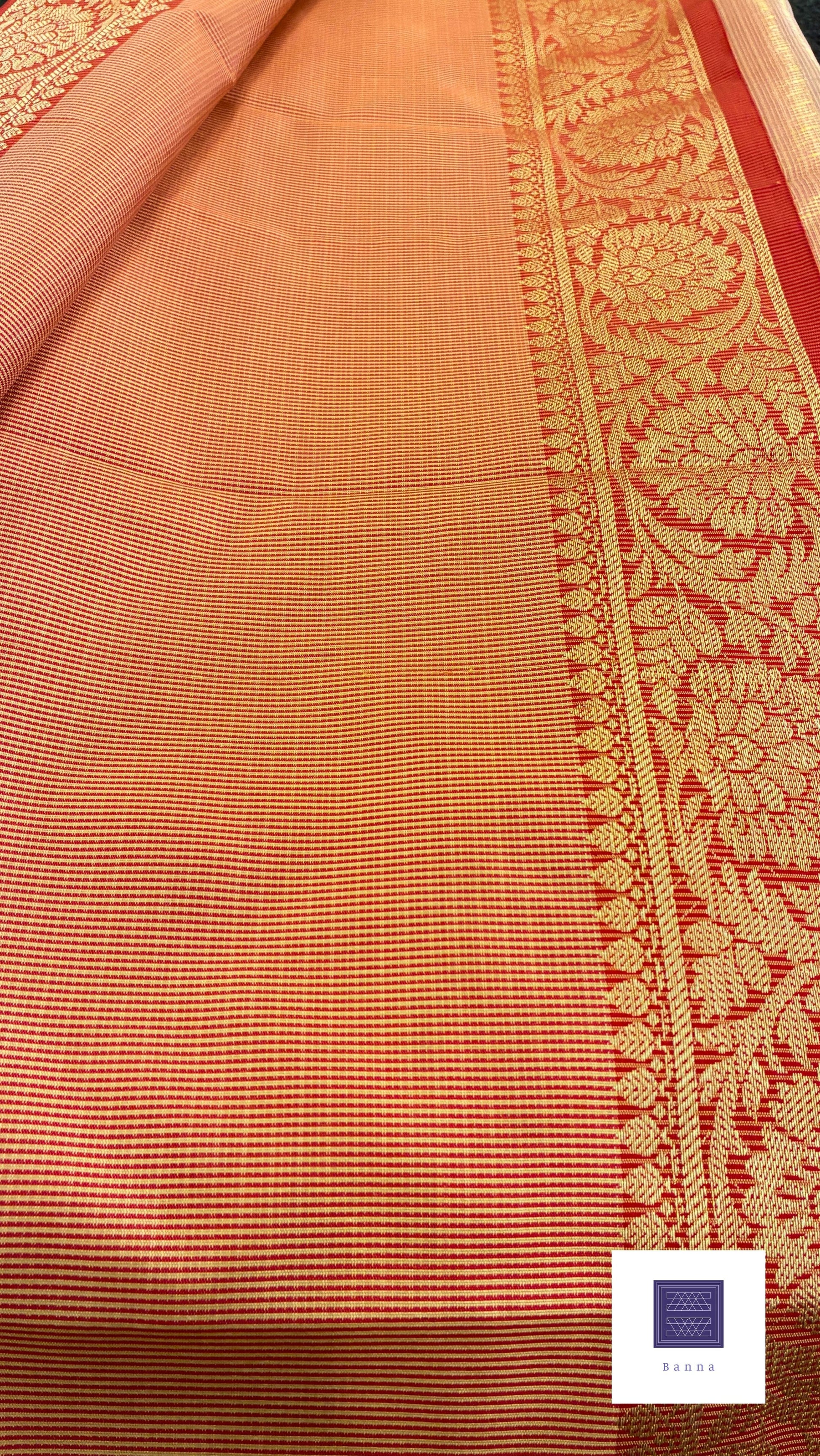 Traditional Kota tissue saree with Red border - Peach